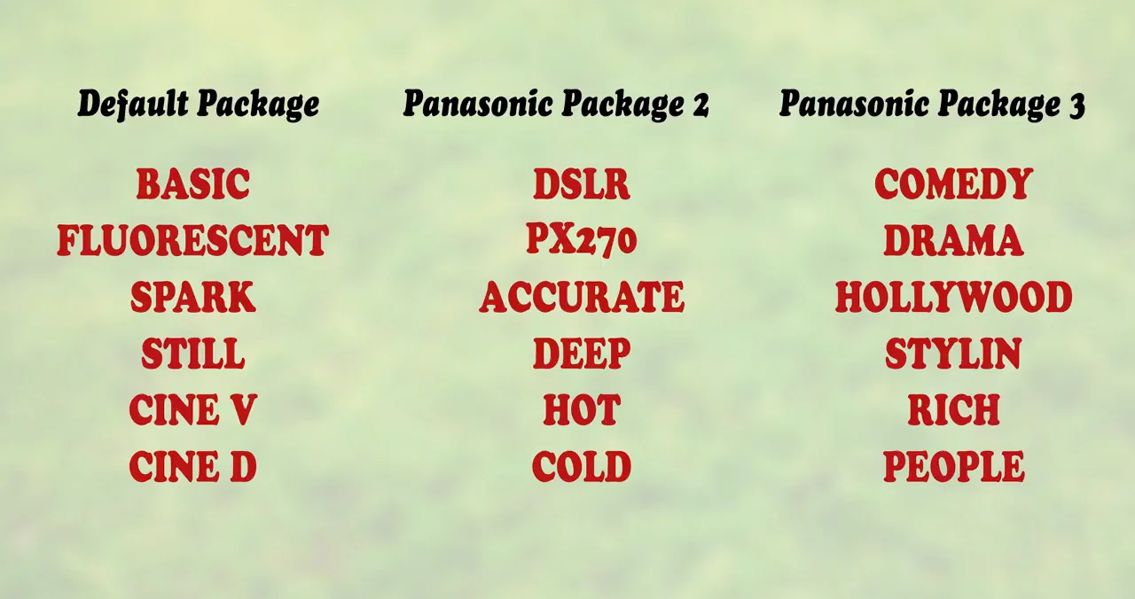 To see what each of these might look like, and to learn what scene files are, check out our previous video explaining scene files for the Panasonic HC-X1.